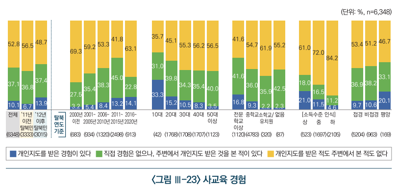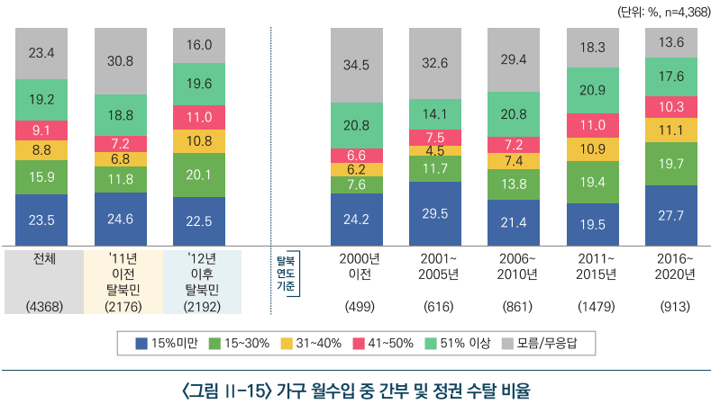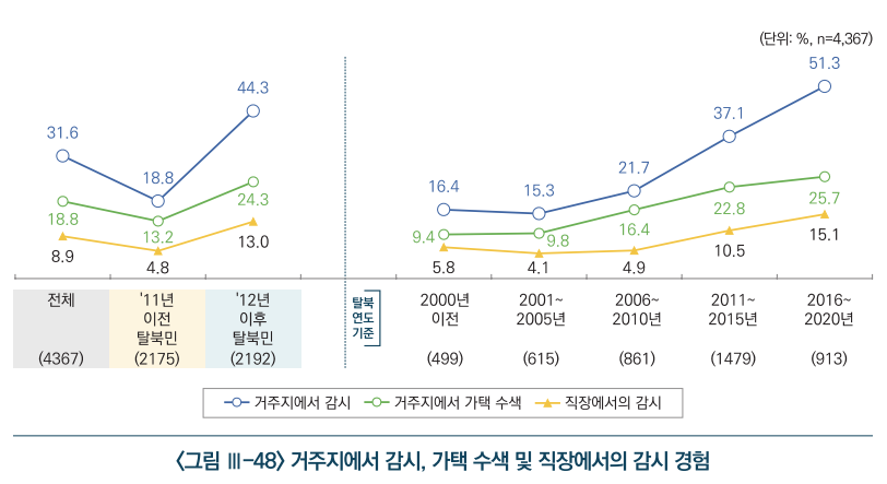 2013년부터 2022년까지 10년간 북한이탈주민 6351명을 일대일로 심층면접 조사한 결과를 분석한 결과다.