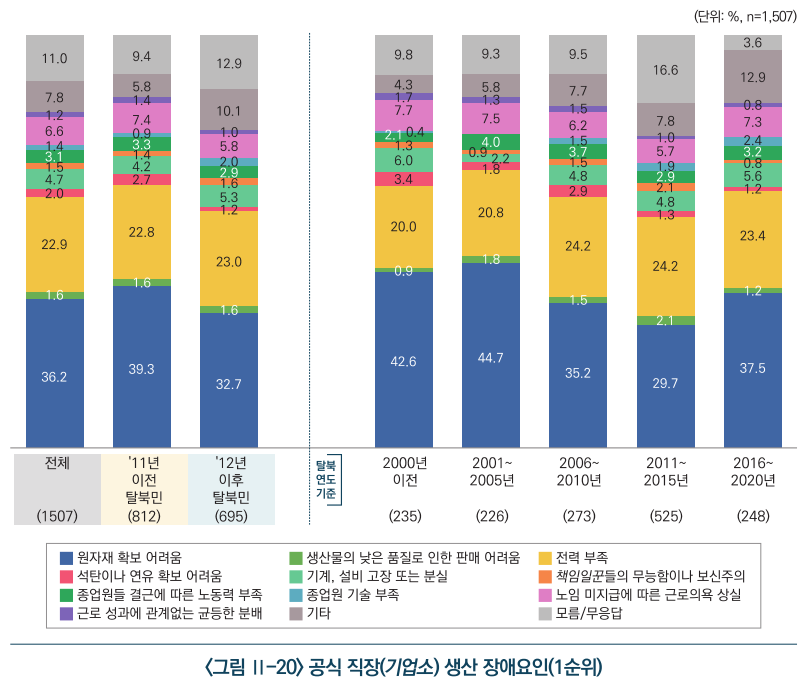 전력 부족과 더불어 원자재 확보의 어려움 은 기업소 생산의 최대 장애요인