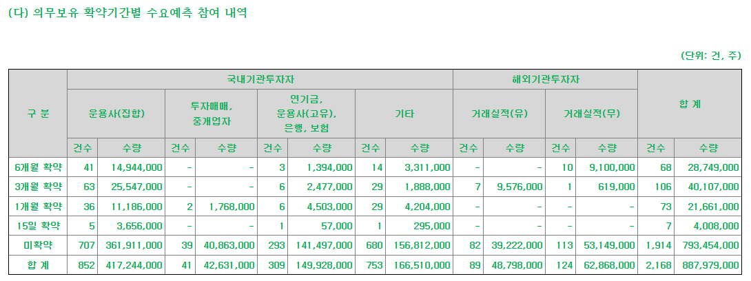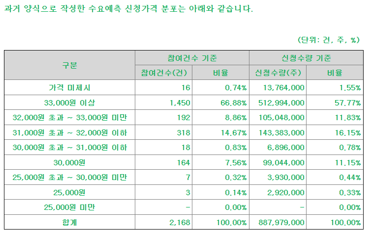 아쉽게도 확정 공모가 미만으로 수요예측에 참가하신 10개의 기관분들은