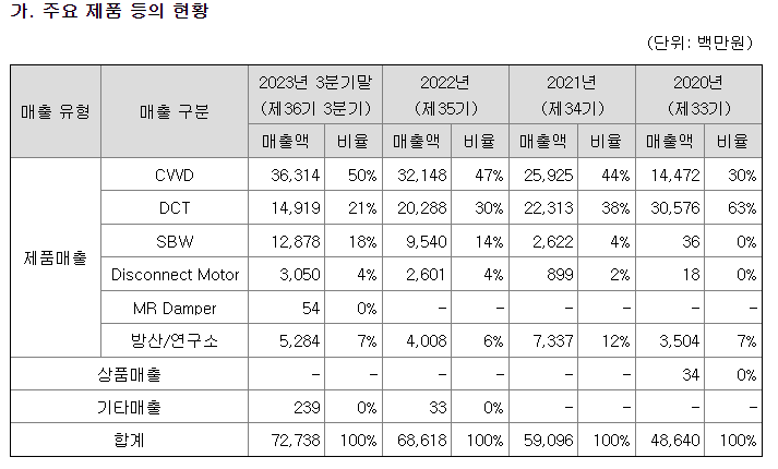 동사는 글로벌 원자재 가격 상승 요인과 2014년 DCT, 2019년 CVVD, 2021년 SBW의 양산에 따른