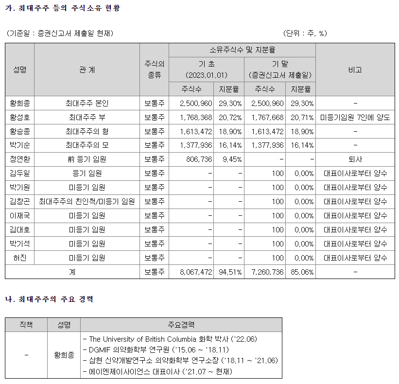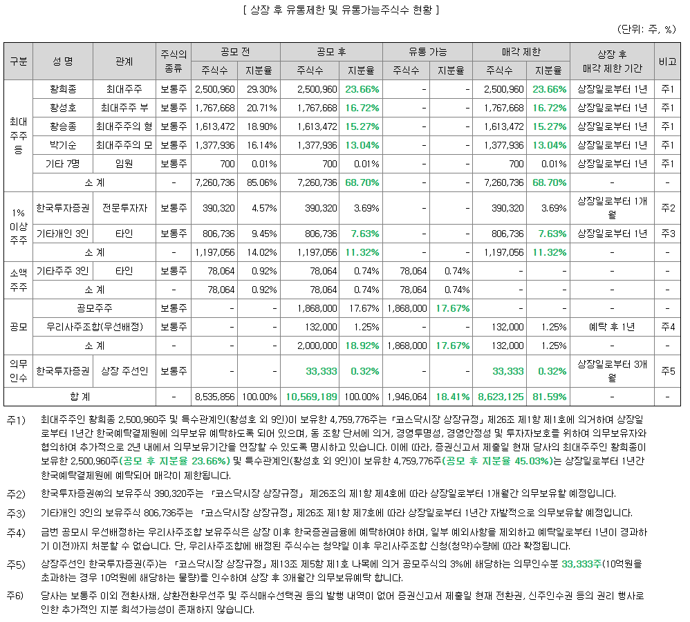 향후 락업이 풀릴때 시장에 매도될 가능성 및 장남인 황승종님이 빅딜할 가능성