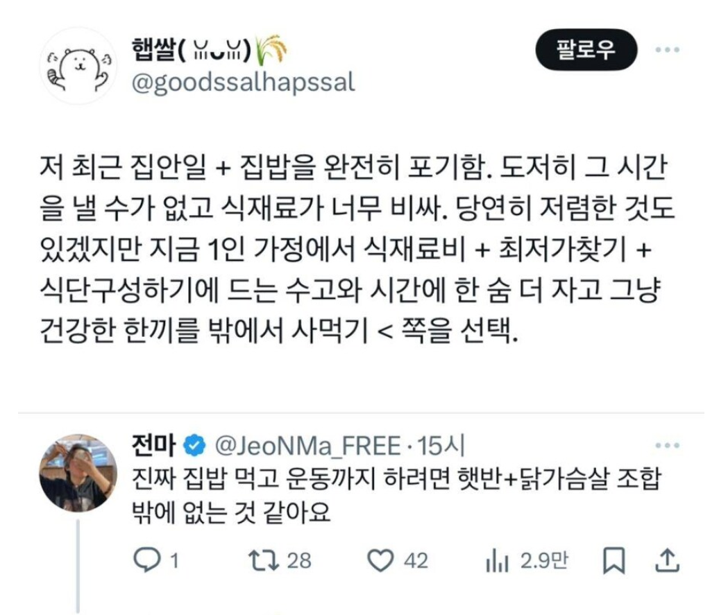 최근 1인가구들은 집밥을 점점 포기함.twt | 유머 게시판 | 루리웹