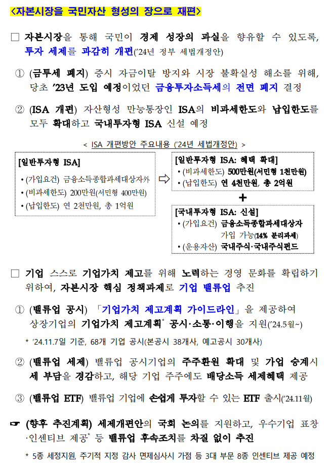 2024년 11월 11일에 금융위는 “윤석열 정부 금융분야 성과 및 향후계획”를 발표 하였음.