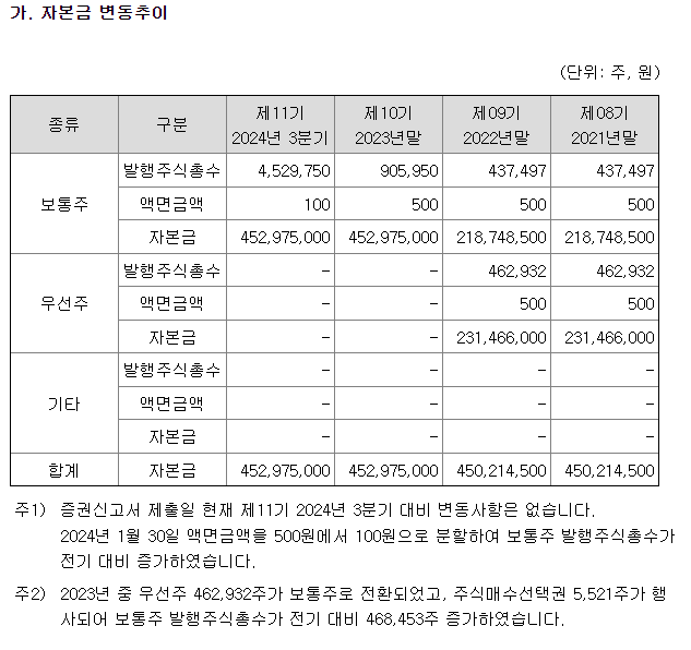 다만, 24년 1월 30일에 액면분할하였다.