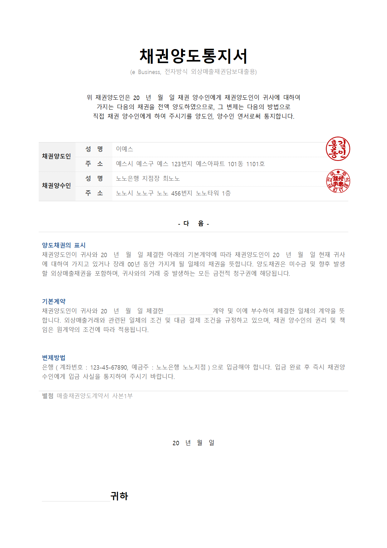 해당 양도통지서라는 문서를 받지 못하겠지만